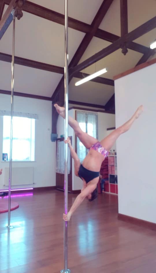 Kerry is a weekly morning regular, unfortunately (or maybe fortunately for her) I have only had the pleasure of training / helping in one class with her. She posts some great photos and videos of her pole journey and I love to see them! I asked Kerry if I could use any of her photos, ones she is proud of or a goal that she has reached, so please enjoy having a look at the next few photos.